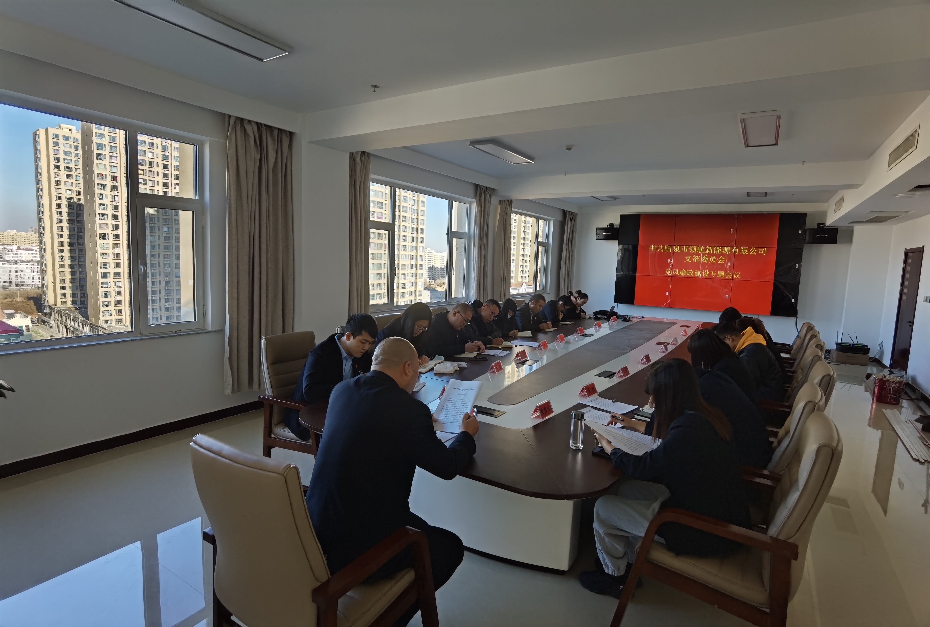 元月十三日,陽泉市領航新能源有限公司黨支部召開2022年黨風廉政建設工作會議,總結2021年全年黨風廉政建設和反腐敗工作,分析形勢和問題,部署2022年全面從嚴治黨工作任務。黨支部書記、董事長趙立新主持會議并講話,總經(jīng)理李勃燾,工會主席段燕林,副總經(jīng)理米苗、馮優(yōu),各部門負責人參加會議。